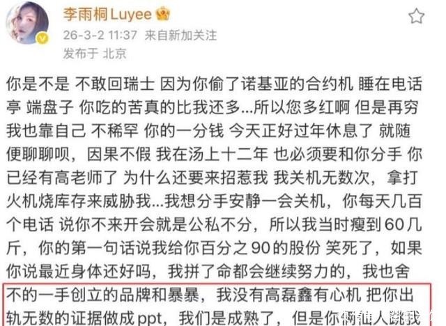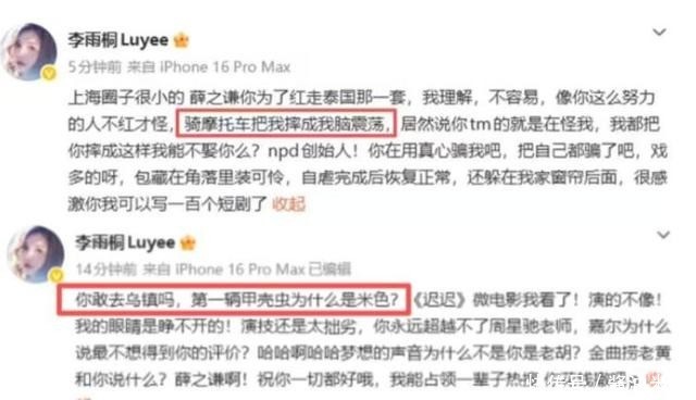 更戏剧化的是,爆料仅过去数小时,李雨桐便悄然删除所有证据与动态,发文示意网友散场,态度骤变令人捉摸不透。