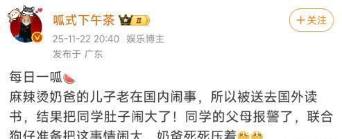 就在他18岁生日刚过去没几天,一位大V博主突然在网上爆出猛料,称某位“麻辣烫奶爸”的儿子,在国际学校读书期间,因恋爱导致一位女同学怀孕。虽然博主没有指名道姓,但“麻辣烫奶爸”这个标签,几乎是明晃晃地指向了厨师出身的张亮。一时间,评论区的矛头全部对准了刚刚成年的张天天。