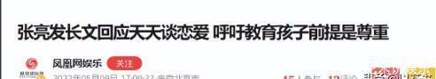 对于一个15岁的初中生来说,这样的“早恋”传闻,足以让他在公众心中“暖男”的形象大打折扣。当时,张亮火速下场回应,发布长文为儿子辩护。他表示,在自己青春期的时候,也曾对异性产生过好感,这是正常现象,希望大家能给孩子一些空间,不要用成人的眼光去过度解读。